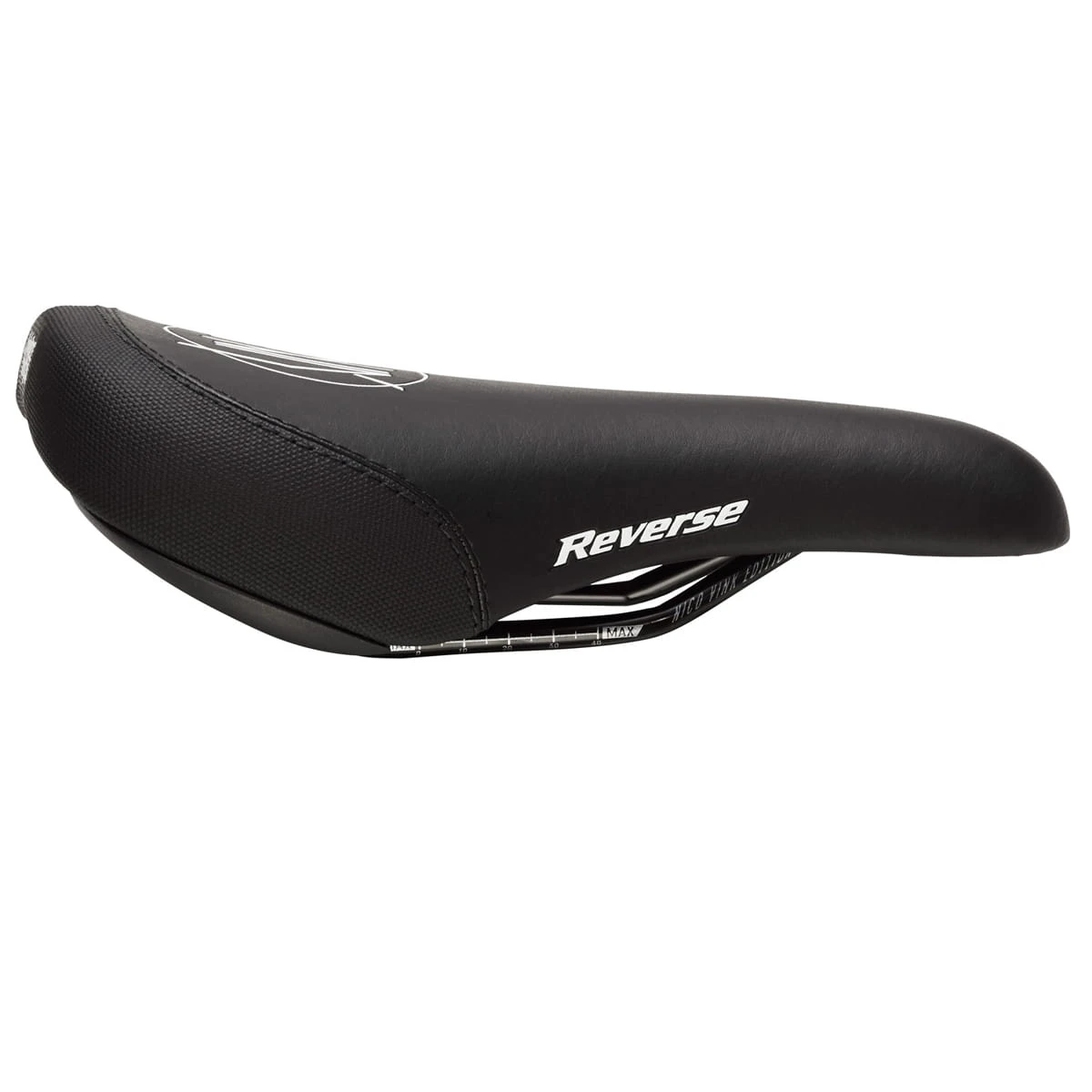Voor dit seizoen heeft Reverse samen met Nico zijn droomzadel gebouwd. Nico staat bekend om zijn loosefest sprongen en zijn harde en compromisloze rijstijl. Hij had een stabiel en duurzaam zadel nodig met een vorm die hem volledige bewegingsvrijheid geeft en toch een goede grip heeft als hij zijn kunstjes doet.