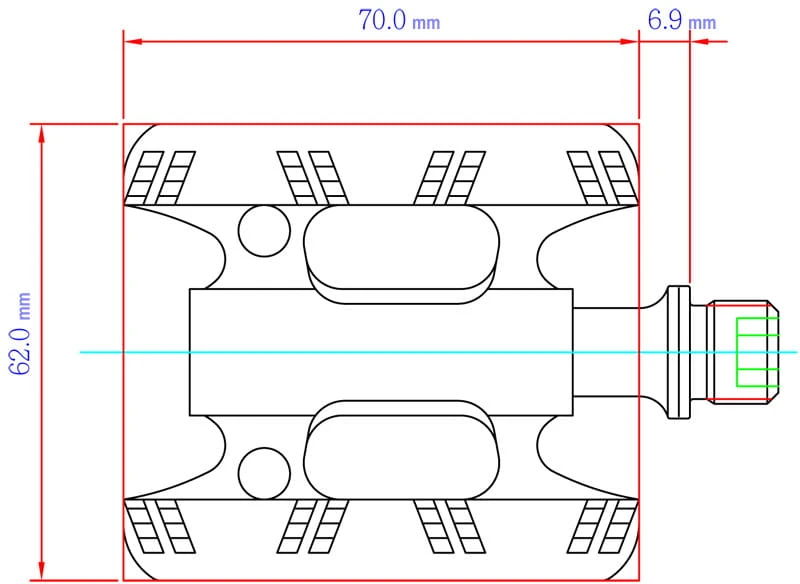 - Pedaalmaat: 70 x 62 mm
