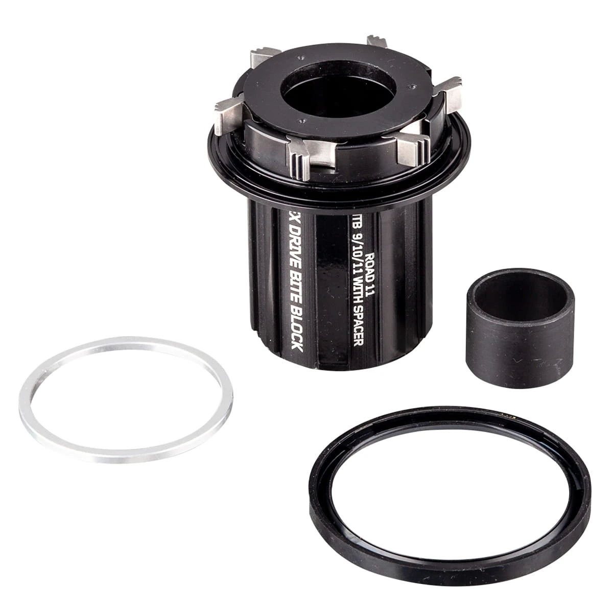 Freehub body voor de Spank HEX naaf, die is voorzien van de anti-bite technologie, die voorkomt dat de cassettes in de freehub body blijven hangen of vastbijten. De cassettehouder is alleen geschikt voor Shimano HGR racefiets onderdelen. Deze set bestaat uit het freewheelhuis, de benodigde tussenringen en de bijbehorende adapterset.
