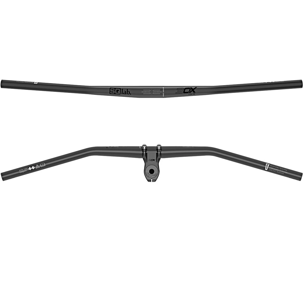 De backsweep van 16° (buiging naar achteren) zorgt voor een rechte overgang van de onderarm naar de hand in een verlengde rijpositie en de upsweep van 4° (buiging naar boven) bepaalt de ellebooghouding voor een comfortabele en zachte houding van de polsen. De 15 mm, 30 mm of 45 mm stijging (stuurhoogte) zorgt voor een individuele aanpassing van de zitpositie. Deze speciale configuratie, alleen te vinden in SQlab producten, geeft absolute controle en veilige bediening, in elk terrein. De perfecte coördinatie van vorm, wanddikte en diameter, samen met de complexe kromming die geoptimaliseerd is voor rijdynamiek en ergonomie, maken van het SQlab 3OX-stuur een van de meest stabiele en tegelijkertijd lichtste sturen die momenteel op dit gebied verkrijgbaar zijn. Het stuur wordt geleverd zonder de afgebeelde stuurpen.